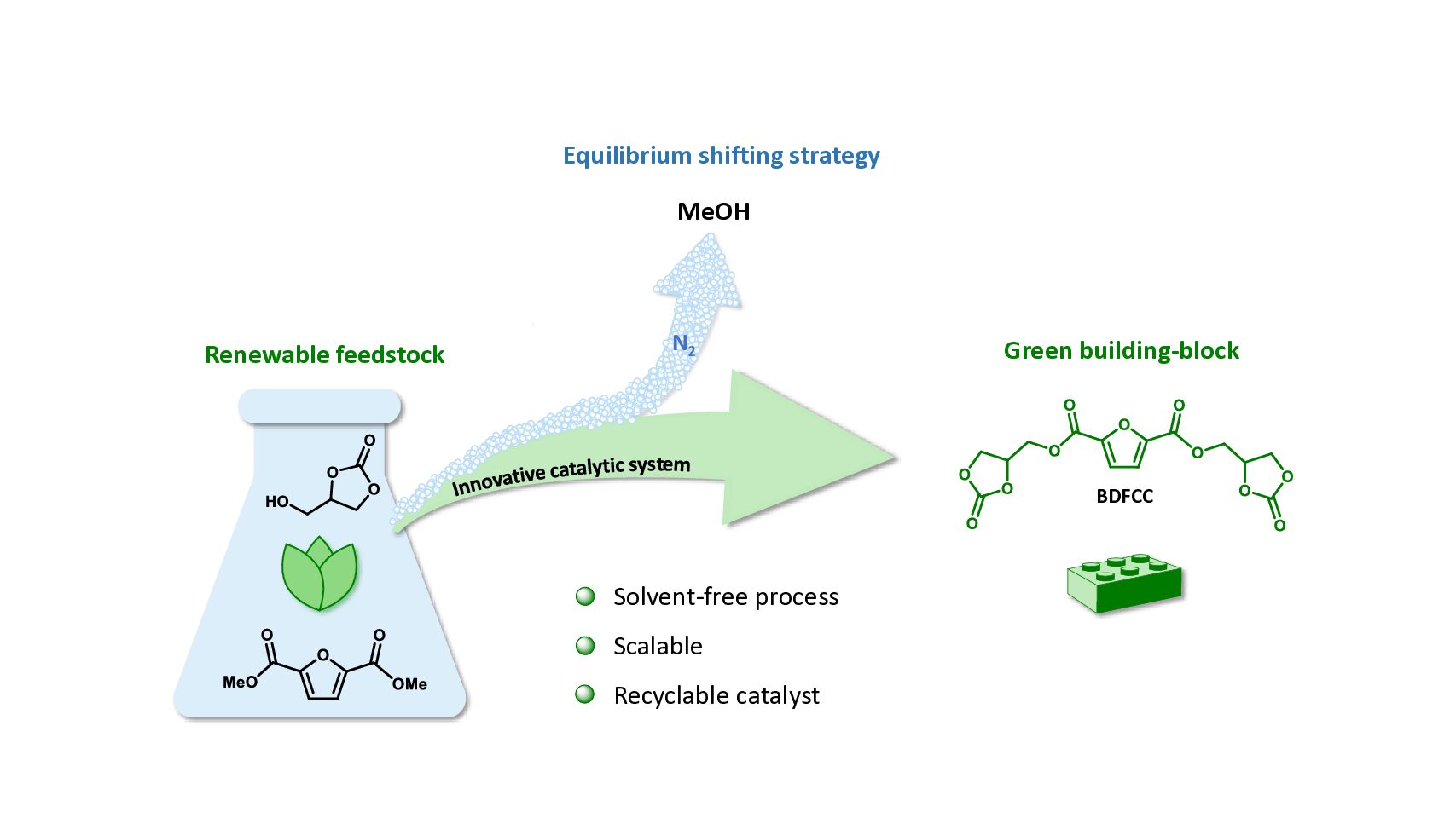 En este trabajo, los autores presentan la síntesis de un FDCA bis-cyclic carbonate derivado de materias primas renovables mediante un enfoque catalítico innovador. La molécula resultante, que incorpora dos funcionalidades de carbonato cíclico, representa un intermediario de alto valor para el diseño de polímeros sostenibles.